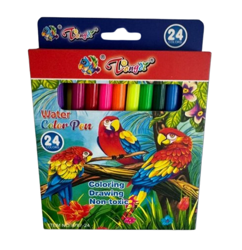 The Tongdi Water Color Pen Drawing Set (24 Colors) offers a wide spectrum of vivid, long-lasting shades perfect for all your creative projects. These water-based, non-toxic pens are designed for smooth and consistent coloring, making them ideal for drawing, sketching, schoolwork, and detailed artwork. Each pen delivers bright, blendable color with excellent control, encouraging artistic exploration for both children and adults. Packaged in a vibrant box featuring colorful parrots, this set is a wonderful choice for art lovers, classrooms, or anyone who enjoys expressing creativity through color.